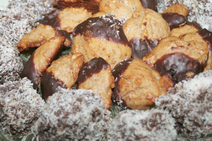 Priprema: Pomiješati suhe, pa tekuće sastojke, a zatim sve zajedno. Tijesto ne smije biti tekuće, već se trebaju žlicom stavljati komadi veličine oraha na margarinom namašten lim. Ako je smjesa pretvrda, treba dodati malo mlijeka, a ako je tekuća onda dodati još malo brašna. Peći na 180°C oko 10-15 minuta. Kad su poljupci pečeni, mogu se s jedne strane umočiti u glazuru od čokolade. Za glazuru sve sastojke zagrijati, da se čokolada otopi.