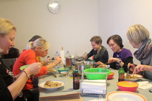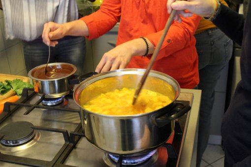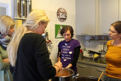 Nakon određene stanke, u subotu 15. studenog 2014. nastavili smo s novom radionicom kuhanja za odrasle. Nikolina Plenar je uz pomoć polaznika pripremila krem juhu od bundeve, pašticadu sa seitanom, salatu od cikle, mrkve i jabuke i desert za kraj: najjednostavniji i najfiniji čokoladni kolač!