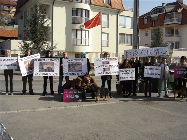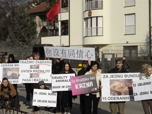Na međunarodni dan prosvjeda protiv kineske industrije krzna, 13. veljače, u Hrvatskoj održat će se prosvjed ispred Kineske ambasade u Zagrebu, Mlinovi 132, s početkom u 12 sati s naglaskom na zakonsku zabranu uvoza i prodaje krzna od pasa i mačaka u Hrvatskoj prema direktivama EU prema kojima takva zabrana već postoji.