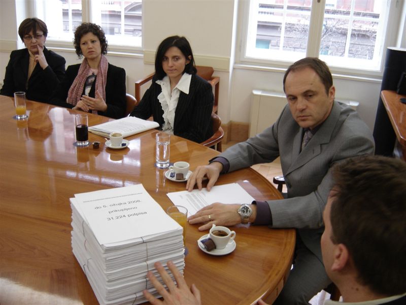 Predstavnici udruge Prijatelji životinja će u četvrtak, 6. ožujka 2008., u Upravi za zaštitu prirode pri Ministarstvu kulture uz nazočnost predstavnika Državnog zavoda za zaštitu prirode, predati do sada sakupljenih 31.224 potpisa peticije državnom tajniku, Zoranu Šikiću.