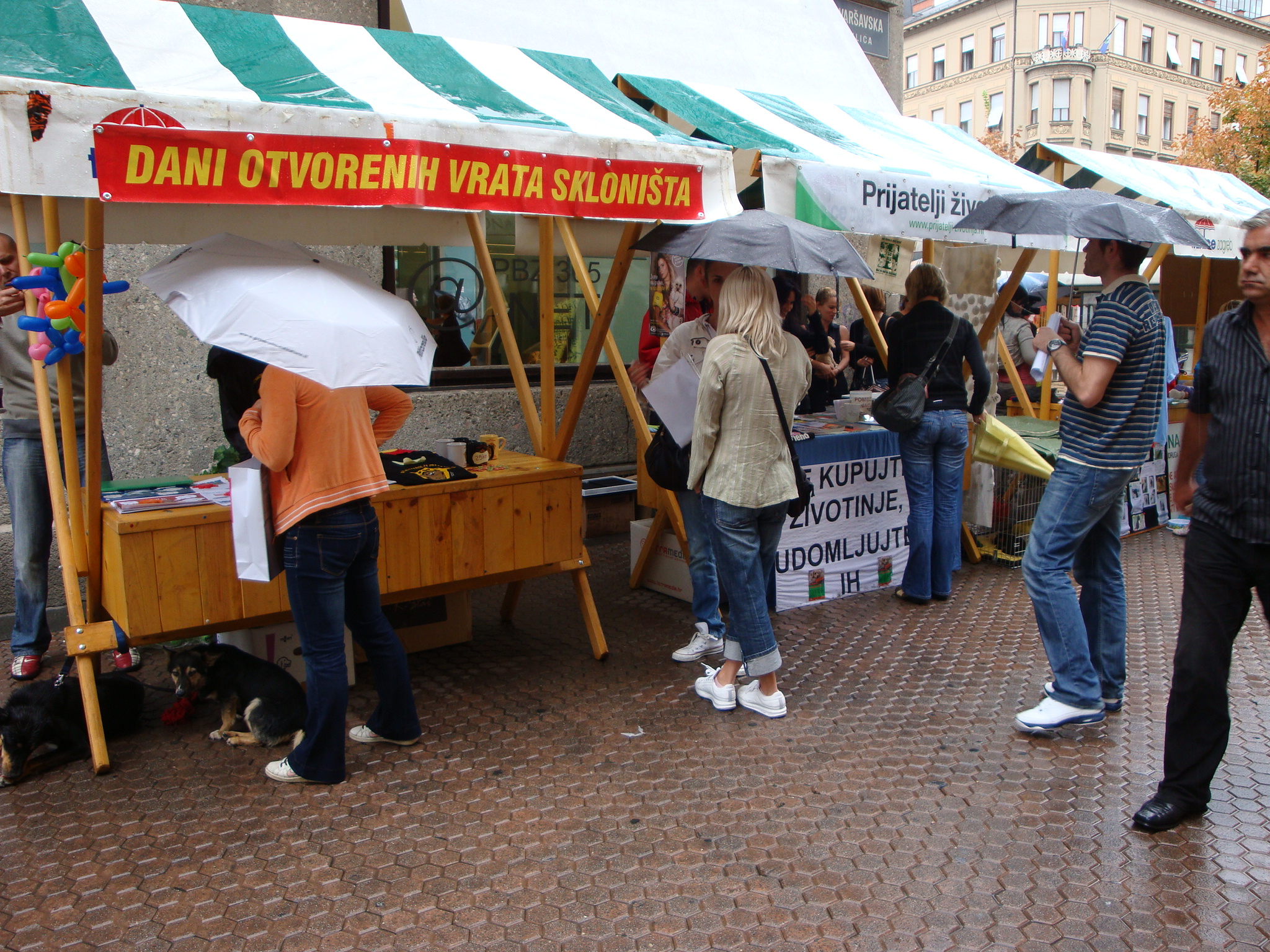Informativni štandovi, na kojima će građani moći dobiti informacije o napuštenim životinjama koje se nalaze u Skloništu te kako i zašto se uputiti u Dumovec, bit će postavljeni u petak, 18. srpnja 2008. od 9 do 13 sati kod Trga Petra Preradovića u Varšavskoj ulici.