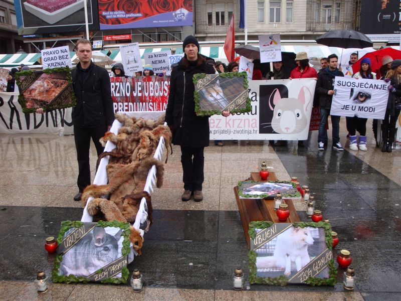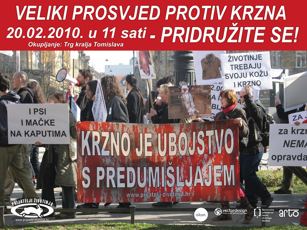 Nakon prosvjeda u Novom Sadu, Osijeku i Sarajevu Prijatelji životinja najavljuju za subotu 20. veljače veliki prosvjed protiv krzna u Zagrebu. Prosvjedna povorka kreće s Trga kralja Tomislava u 11 sati. Stotine glasnih prosvjednika s brojnim transparentima proći će centrom Zagreba zaustavljajući se pred krznarijama kako bi zapalili svijeće za ubijene zbog glamura.