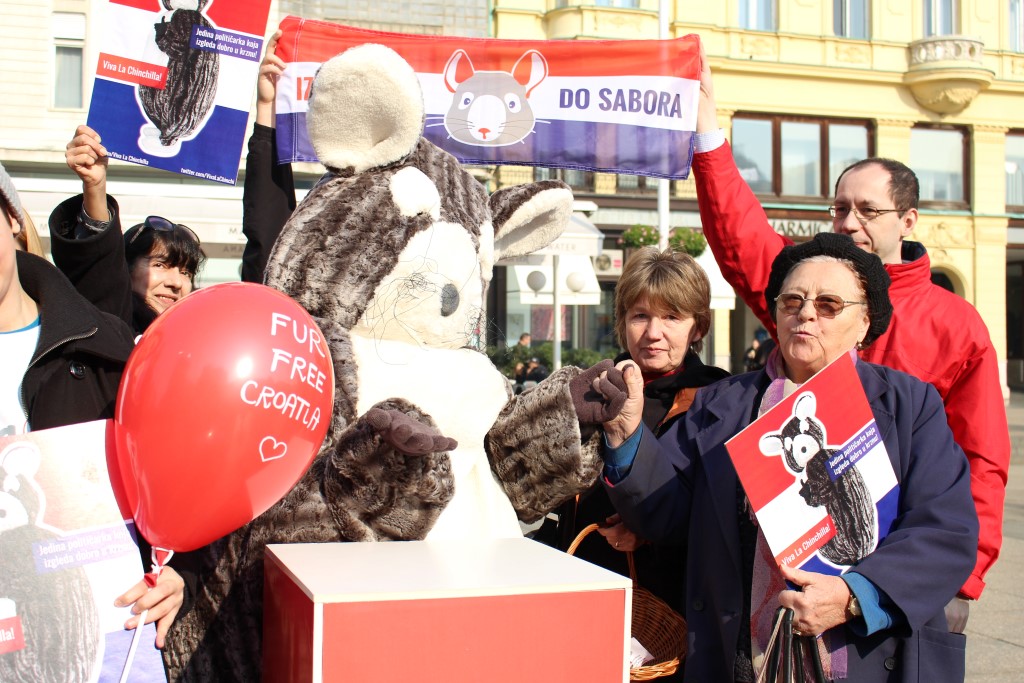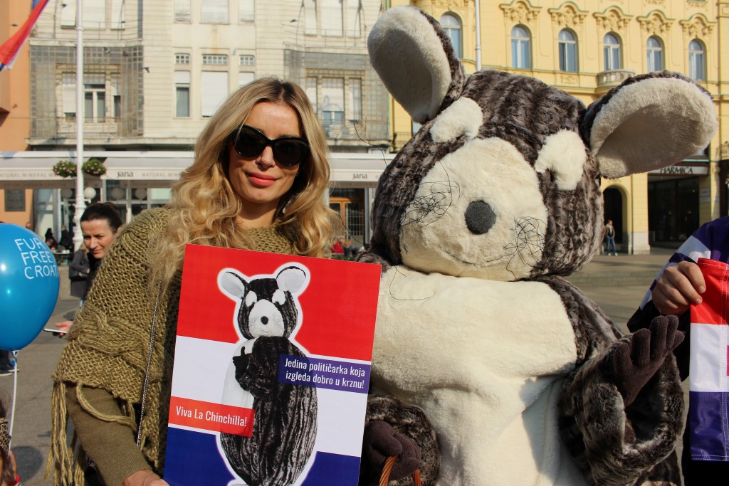 Nezavisna kandidatkinja Činči, prijateljica ljudi i svih drugih životinja, održala je danas svoj predizborni skup na zagrebačkome Trgu bana Jelačića.