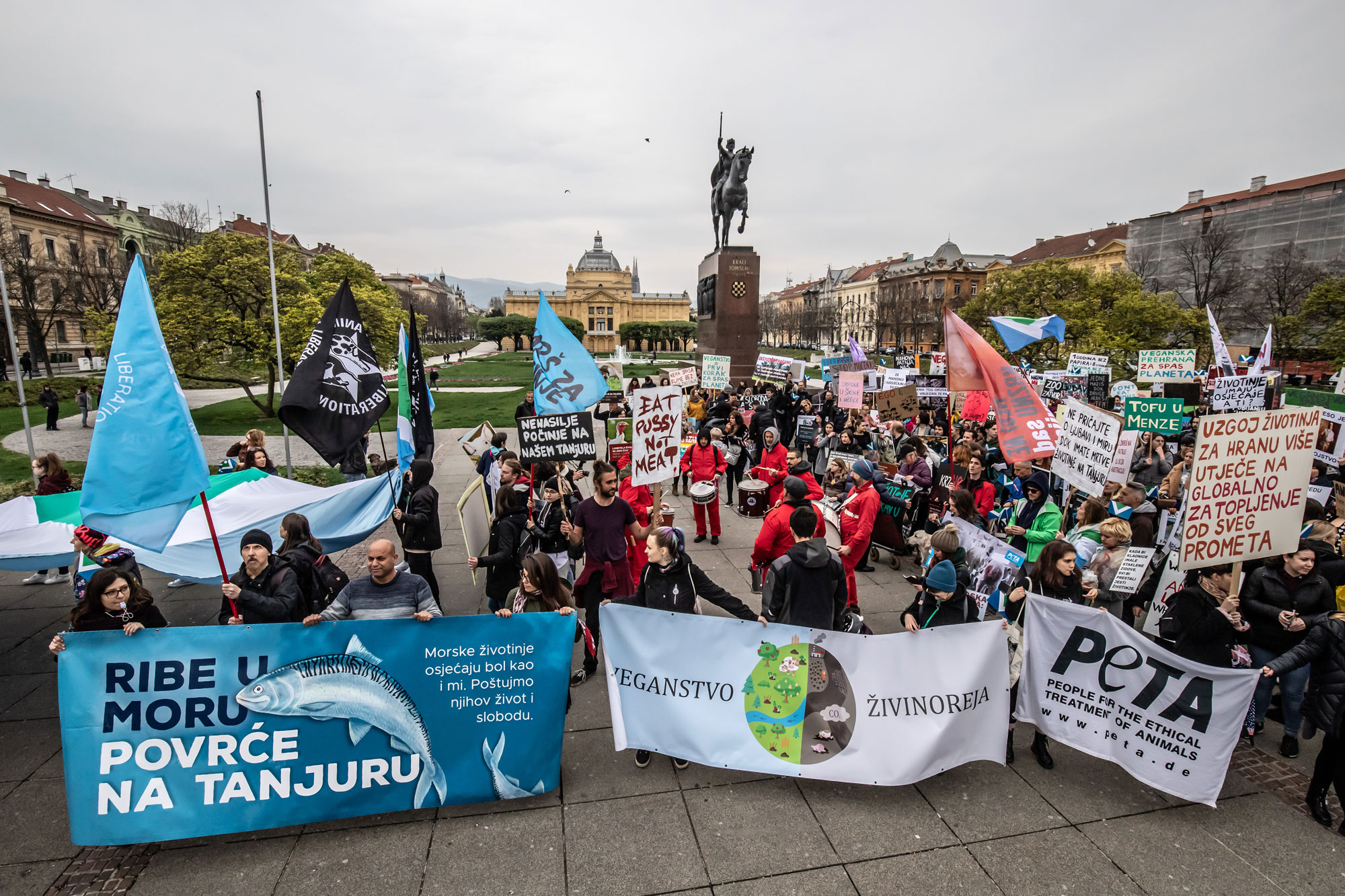 – 4. Marš za životinje: veganska zastava velika 9 m, transparenti koji prikazuju 35 razloga za Marš
